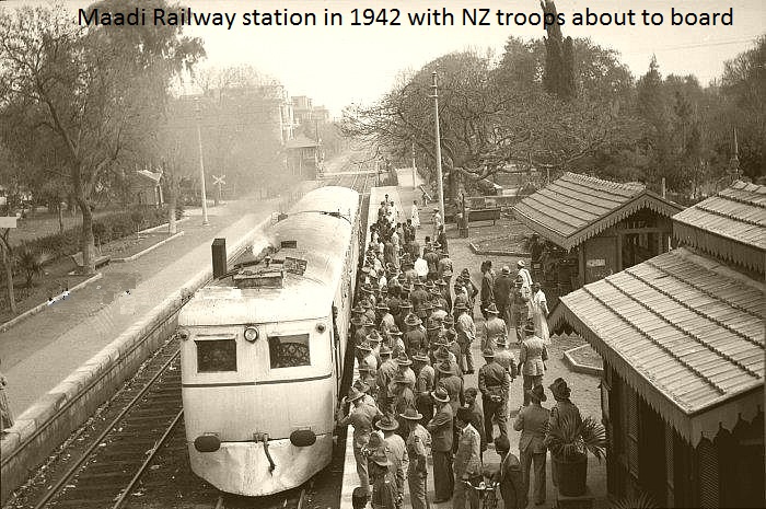 1942: New Zealand troops stationed in Digla about to board diesel train coming from Helwan on its way to Bab al-Louk staion in downtown Cairo
