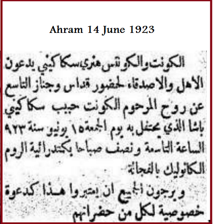 NB: Habib Sakakini Pasha's adopted son Henri (b. 1889) is the grandfather of movie director Asmaa (Fathia) El Bakry through her mother Henriette H Sakakni.
