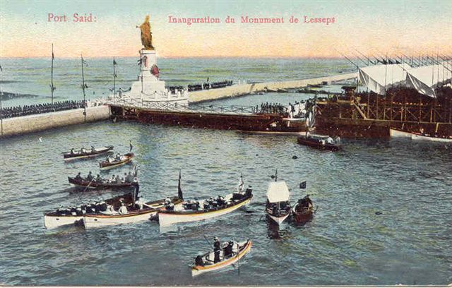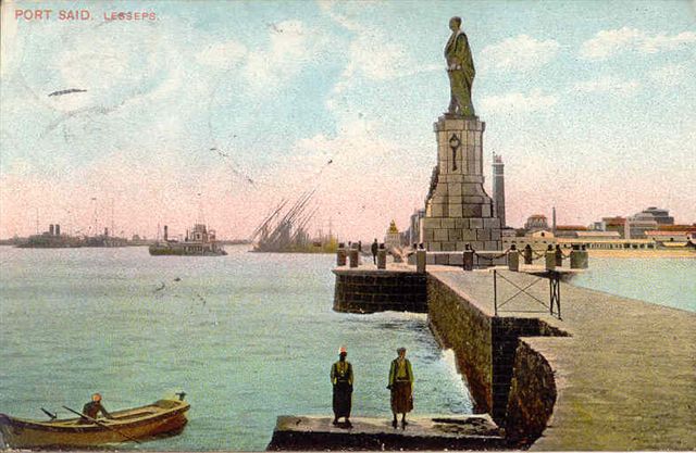 The colossal statue of Ferdinand de Lesseps by Emmanuel Frémiet (1824-11/09/1910) was installed at entrance of the Suez Canal at Port Saiid on 17 November 1899 and forcibly removed with TNT on 23 December 1956.