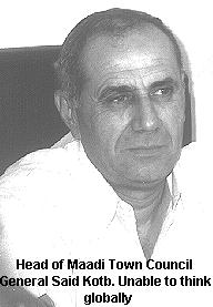 Maadi's Green attributes much of the damage to the "loose or inadequate" enforcement of laws by local officials. "There is a big gap between the current state of the environment and the targets of cleanliness set by the government." Harsh words confirmed later in the day, when Nile TV arrived at the Town Council's offices off Road 77 to interview General Kotb, only to find the entire area covered with garbage. "The trash you see is not in Maadi. It is in Bassatine." explained an embarrassed General Kotb. "You see, my responsibility as Chief of Maadi's Town Council ends at Road 77 which forms the boundary line between the two districts." So much for think globally!