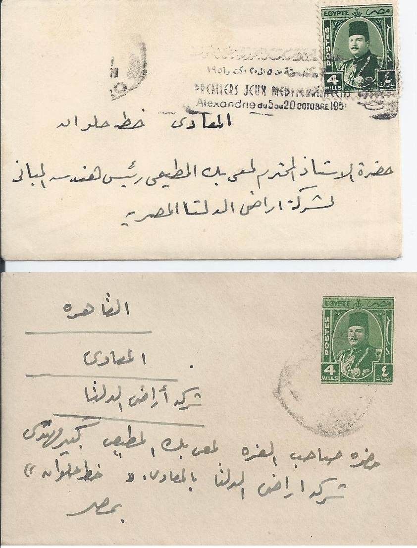 letters addressed to EDLICO's Chief Engineer Lamei ELmotei Bey in 1951 (photo courtesy Sami L. Elmotei)