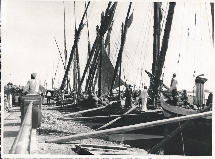 photo taken in 1951 by EDLICO's Chief Engineer Lamei Elmotei of Maadi Nile port with the Feluccas waiting to be loaded (photo courtesy Sami L. Elmotei)