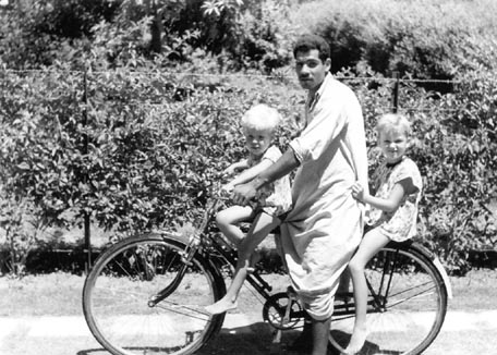Maadi Sporting Club's legendary swimming instructor Ibrahim with Sabine and Stefan Richter circa 1960
